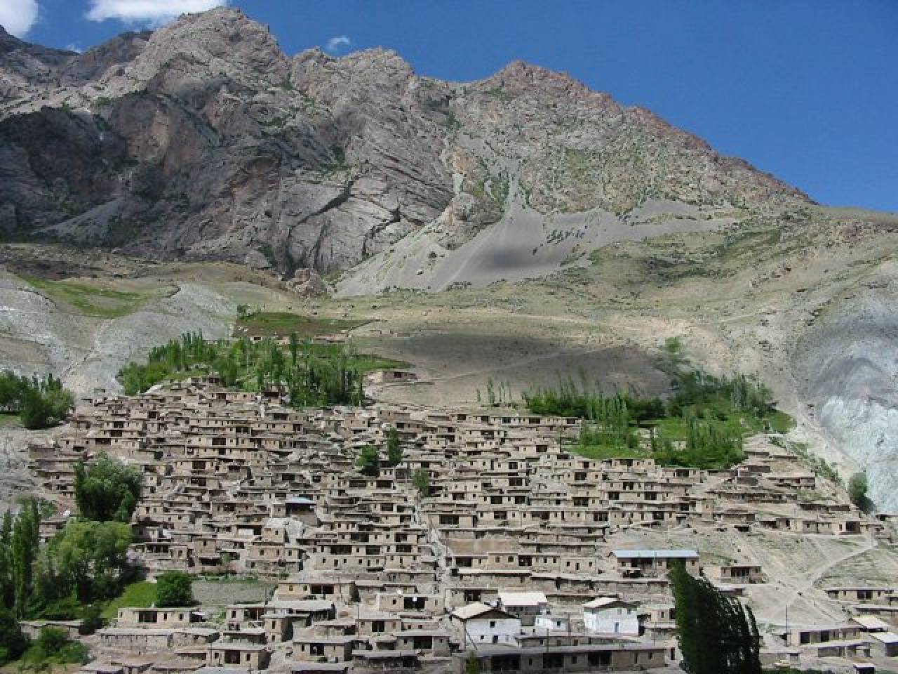 パンジャケント市から山奥に向かって1時間ほど車を走らせると、想像もつかないような村があります。パンジャケント区の最も外れにある村です。ザラフシャン川をずっと沿って行くと、自然の豊かさに感銘を受けることでしょう。川の水はとても澄んでいて、川底の石まで見通すことができます。村に入る前にちょっと高い山を登ると、果樹園に囲まれた村民が集まる小さな広場があります。そこから山頂までは建物が立ち並んでいます。山腹に階段状に建てられた建物を隣の山から見ると、村全体が巨大なビルのように見えます。村のお手洗いは全て村から離れた川の向こう側にあります。村の人々は皆親切で、村に入った途端に皆が集まってきて、いろんな美味しい物をご馳走してくれます。特に子供たちが大はしゃぎして、お祭りのようになります。この村でホームステイもできますし、日帰りでパンジャケット市に帰ることもできます。