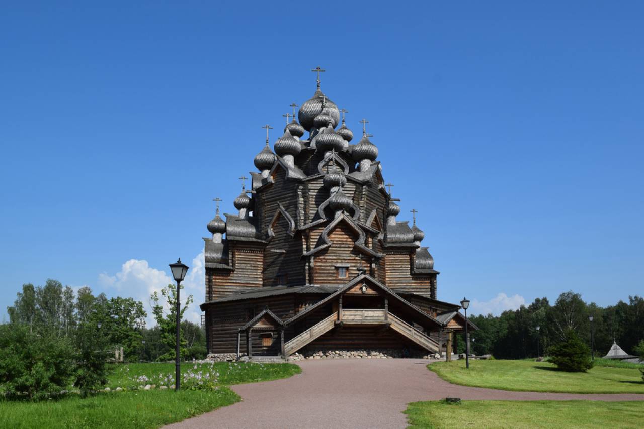 キジ島のものと設計者が同じであるため、材料や建築技術をそのまま再現されていて、外観から構造までキジ島の教会と非常によく似ています。木造なのにドームが陽の光を受けると鈍色に輝いて見えるのは、屋根に白柳が使われているためで、もちろん釘は一本も使われていません。このような工夫は教会のいたるところに見られます。そして教会の一階部分は現在もロシア正教の教会として現地の人たちの信仰を集めています。サンクトペテルブルグの隠れた名所に訪れてみてはいかがでしょうか。