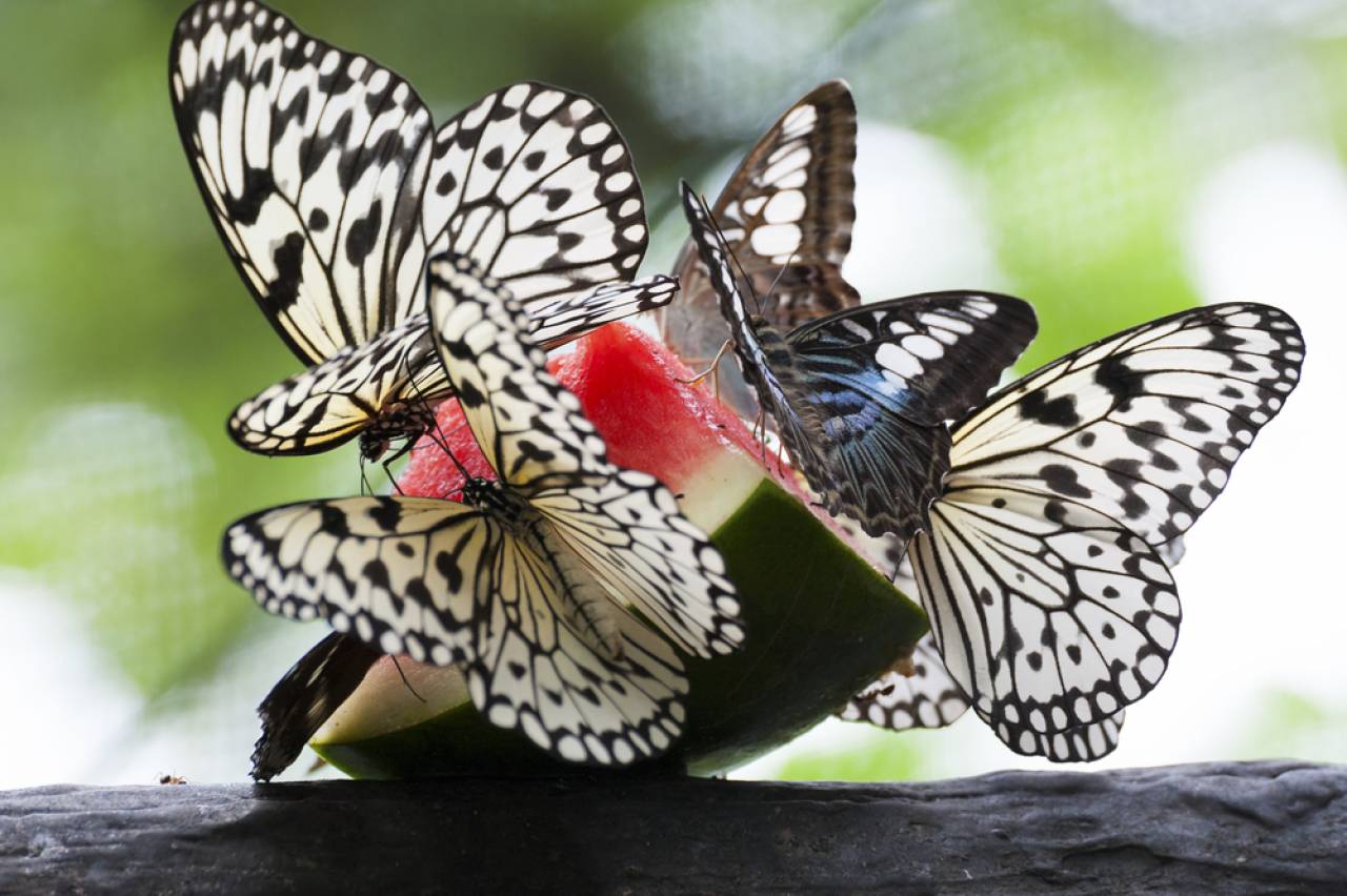 東南アジア、アフリカ、南米諸国エリアからのトロピカルな蝶が展示されています。展示ホール内で蝶は自由に飛行しているため、お客さんに乗ることもあります。冬に訪れても、トロピカルガーデンから夏が感じられます。