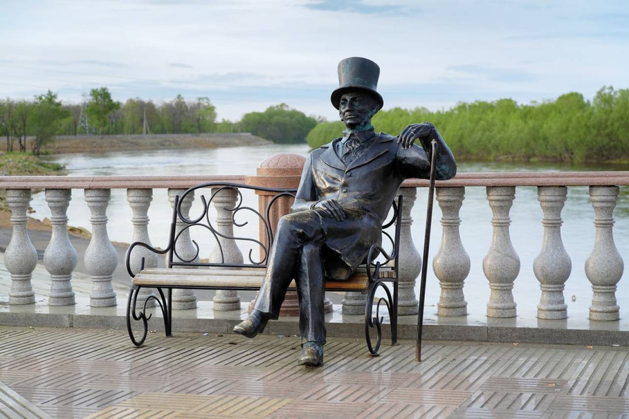 ビロビジャンは数時間で歩いて回れるほどの小さな町で、市内中心部にはシナゴーグがあり、中には小さな博物館が併設され、ユダヤ教に関する展示の他、ビロビジャンに入植した人々が所有していたインディッシュ語で書かれた古い本などを資料として保存しています。その隣に建つユダヤ人協会では、地元のユダヤ人と触れ合うこともできます。メインストリートでは、野菜や果物、日用品などを売る大きな市場があります。看板や新聞など、街中に見られるインディッシュ語の表記が、ここがユダヤ人自治州であるということを感じさせてくれます。