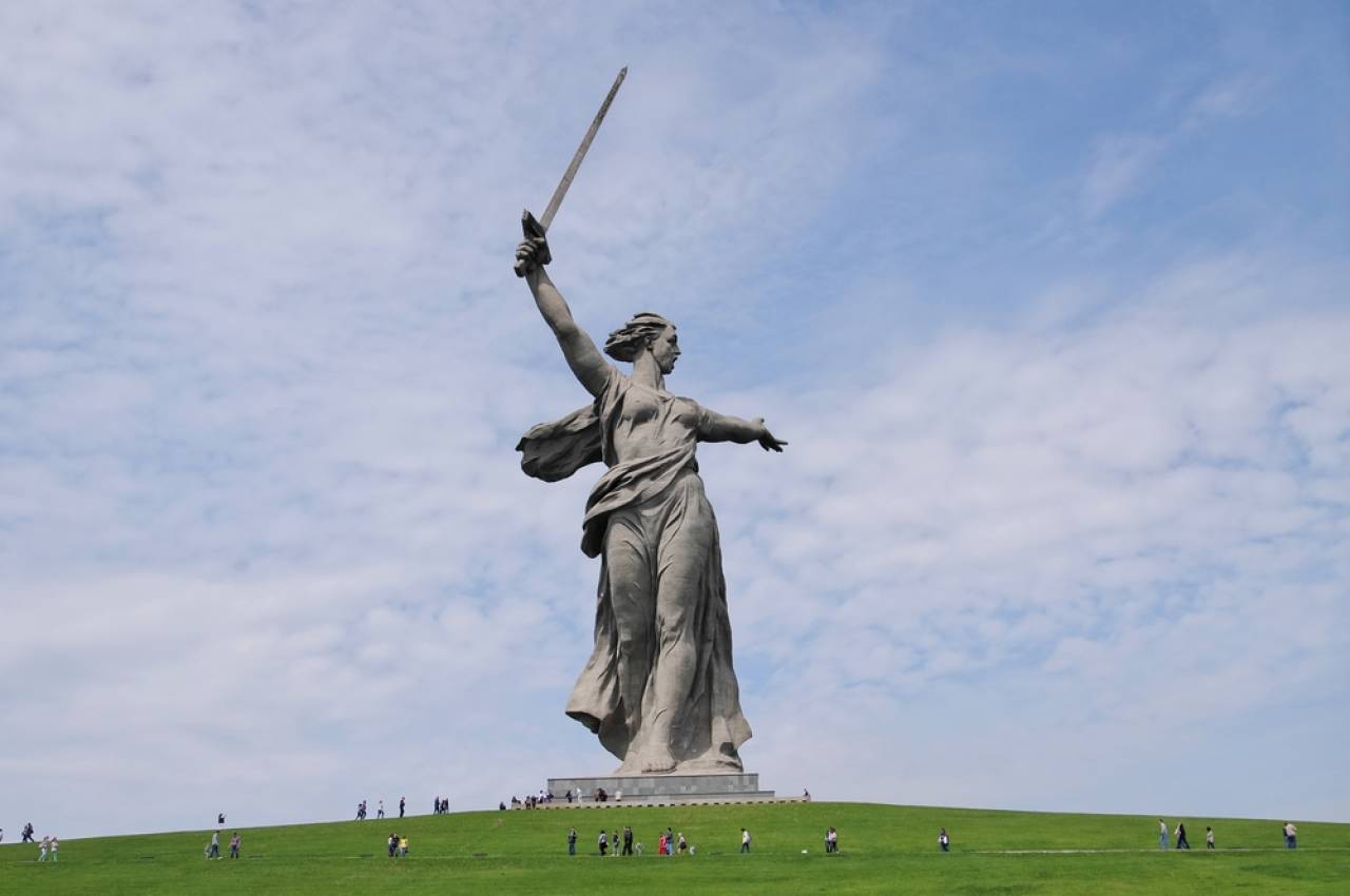 この町は川に沿って細長く延びた町ではありますが、中心部は意外とコンパクトで、大通りにはトラムが走っており、移動も楽です。レーニン大通りからポプラ並木の道を抜けると小銃と手りゅう弾を持った像が小さな池の中に立ち、ここを抜けると戦没者慰霊堂があります。中には英霊の名前がびっしりと書かれ、中央には不滅の火が燃え続けている。毎時55分には中で衛兵の交代式があるので合わせて行きたいところです。町の最大の見所である”ママエフの丘”には巨大な剣を掲げた高さ約80mの「母なる祖国像」が立ち、今はのどかな町並みを見下ろしています。博物館は案内がロシア語のみ、というところもあるので注意しましょう。