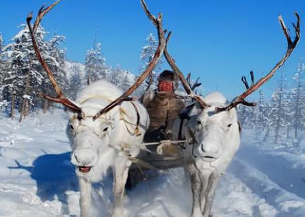 タイガを駆け抜けるトナカイそりも体験できます。